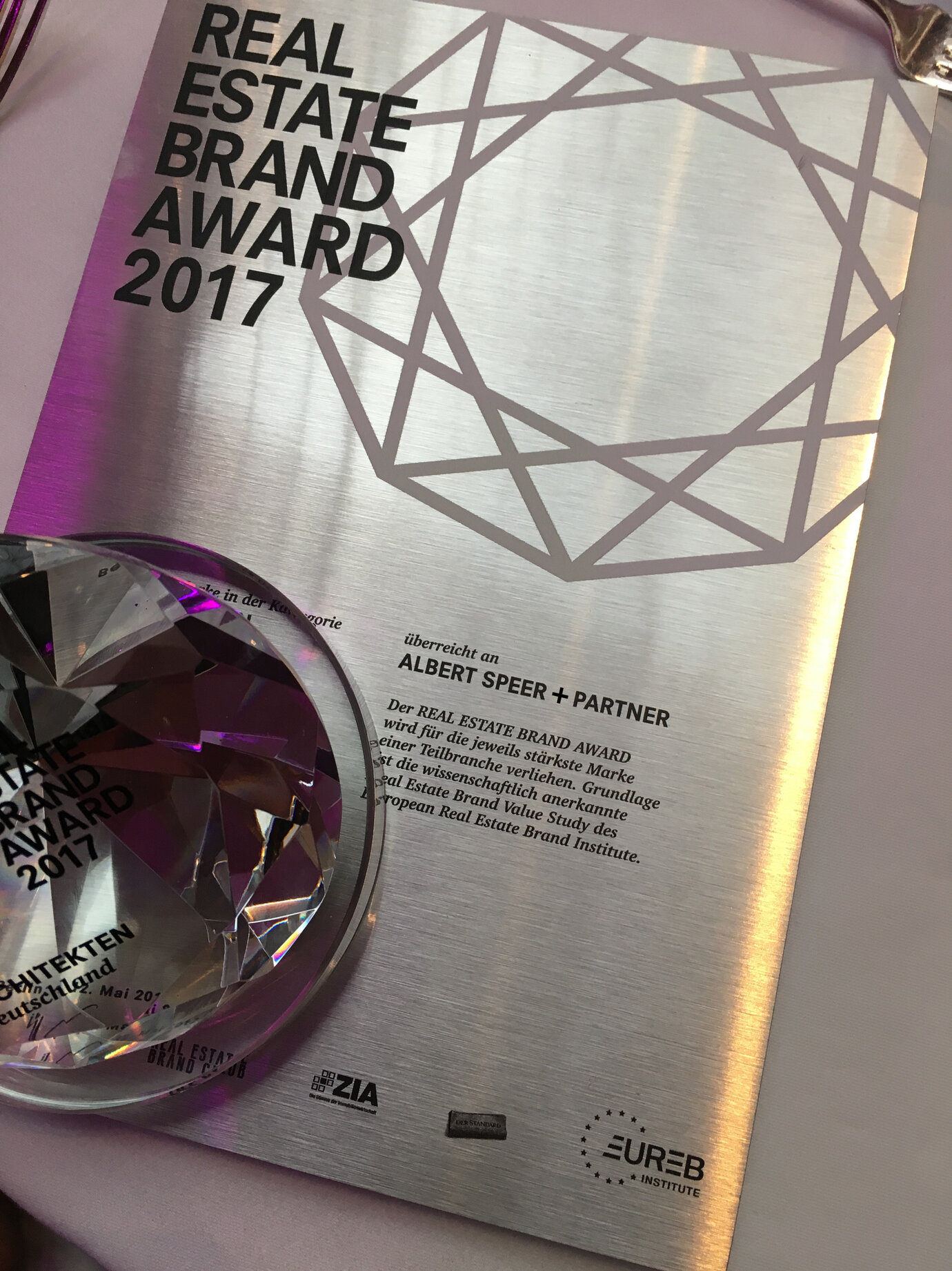 Das Frankfurter Unternehmen weist damit gemäß der Brand Value Study 2017 des European Real Estate Brand Institute erneut den stärksten Markenwert der Architekturbüros im deutschen Markt auf und durfte am 12. Mai in Berlin einen der begehrten „Diamanten“ entgegennehmen.
