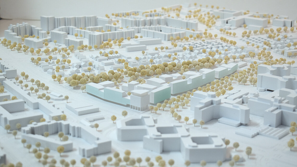 Modell des Siegerentwurfs von Prof. Biedermann Architekten, München: Das Münchner Stadtquartier soll ein lebendiges und attraktives Gebiet mit innovativen Wohnkonzepten- und typologien für unterschiedliche Lebensentwürfe und Altersstufen werden. © Foto: Neubauer Modellbau München