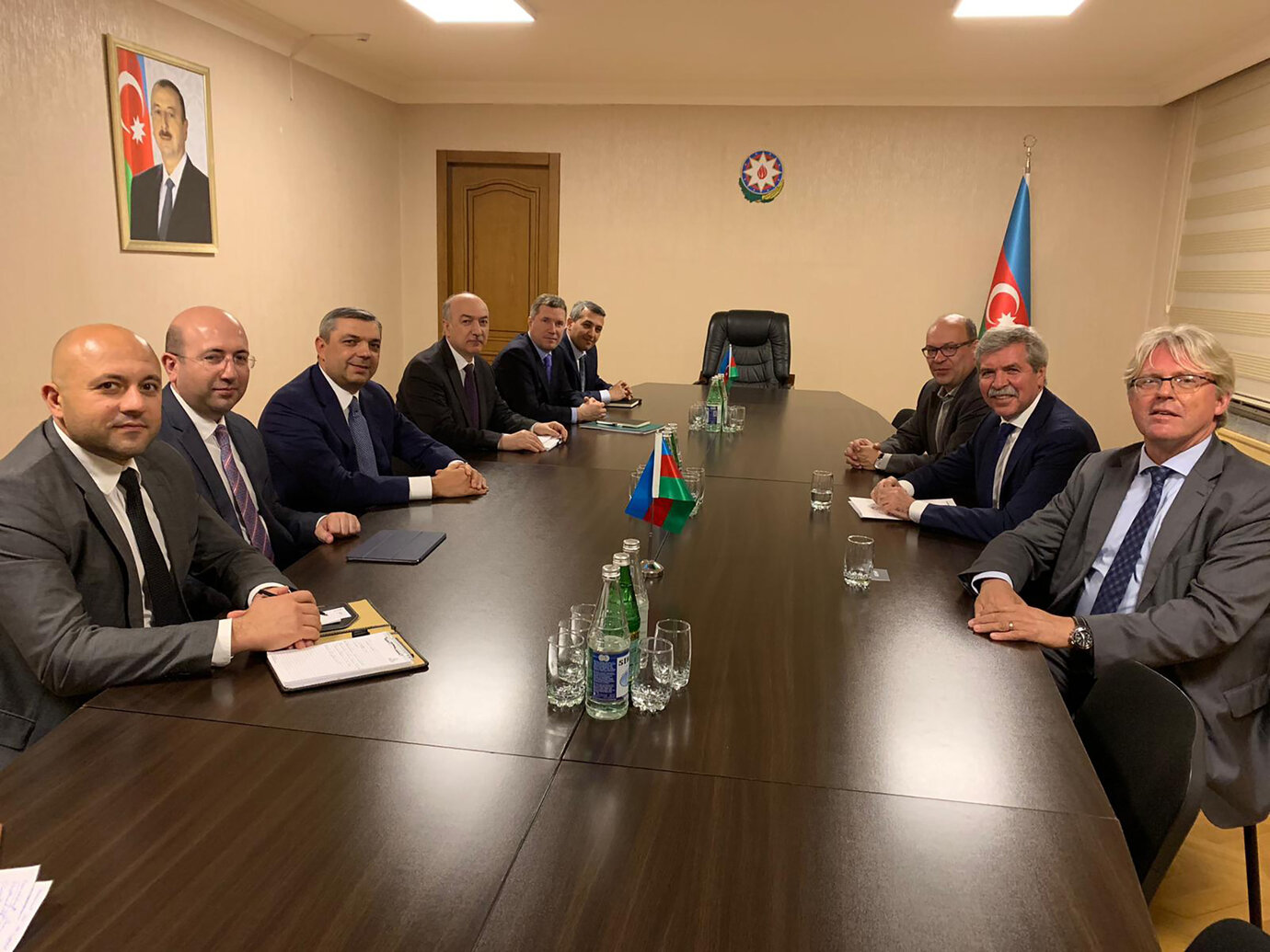 阿塞拜疆共和国城市规划和建筑国家委员会:副主席 Dovlatkhan Dovlatkhanov(左起第 2);主席 Samir Nurijev(左起第 3);员工主管 Anar Guliyev(左起第 4); AS+P 管理人员(右侧)