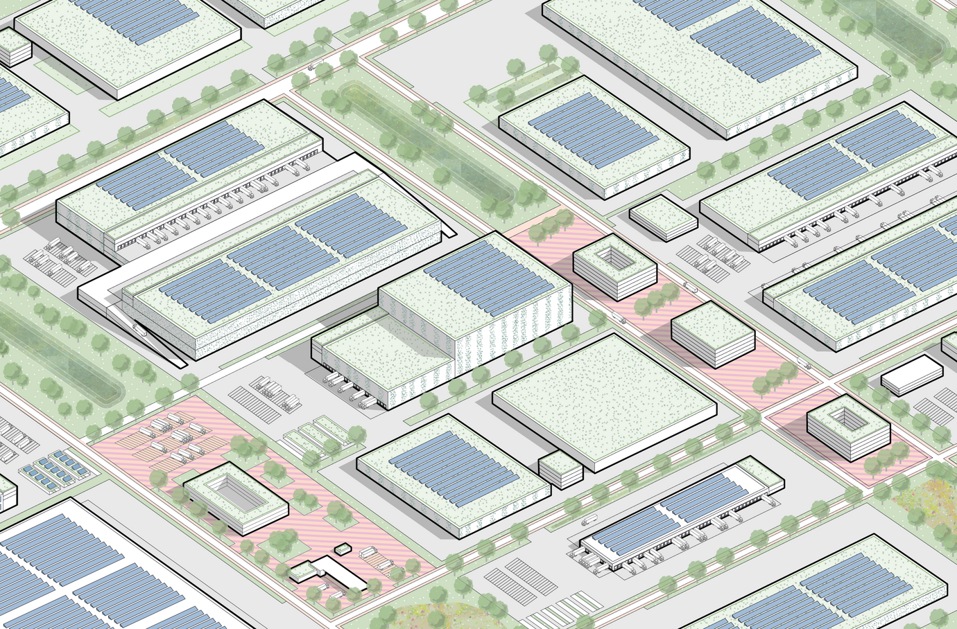 Das effiziente klimafreundliche Logistikquartier © AS+P Albert Speer + Partner GmbH | Visualisierung: AS+P