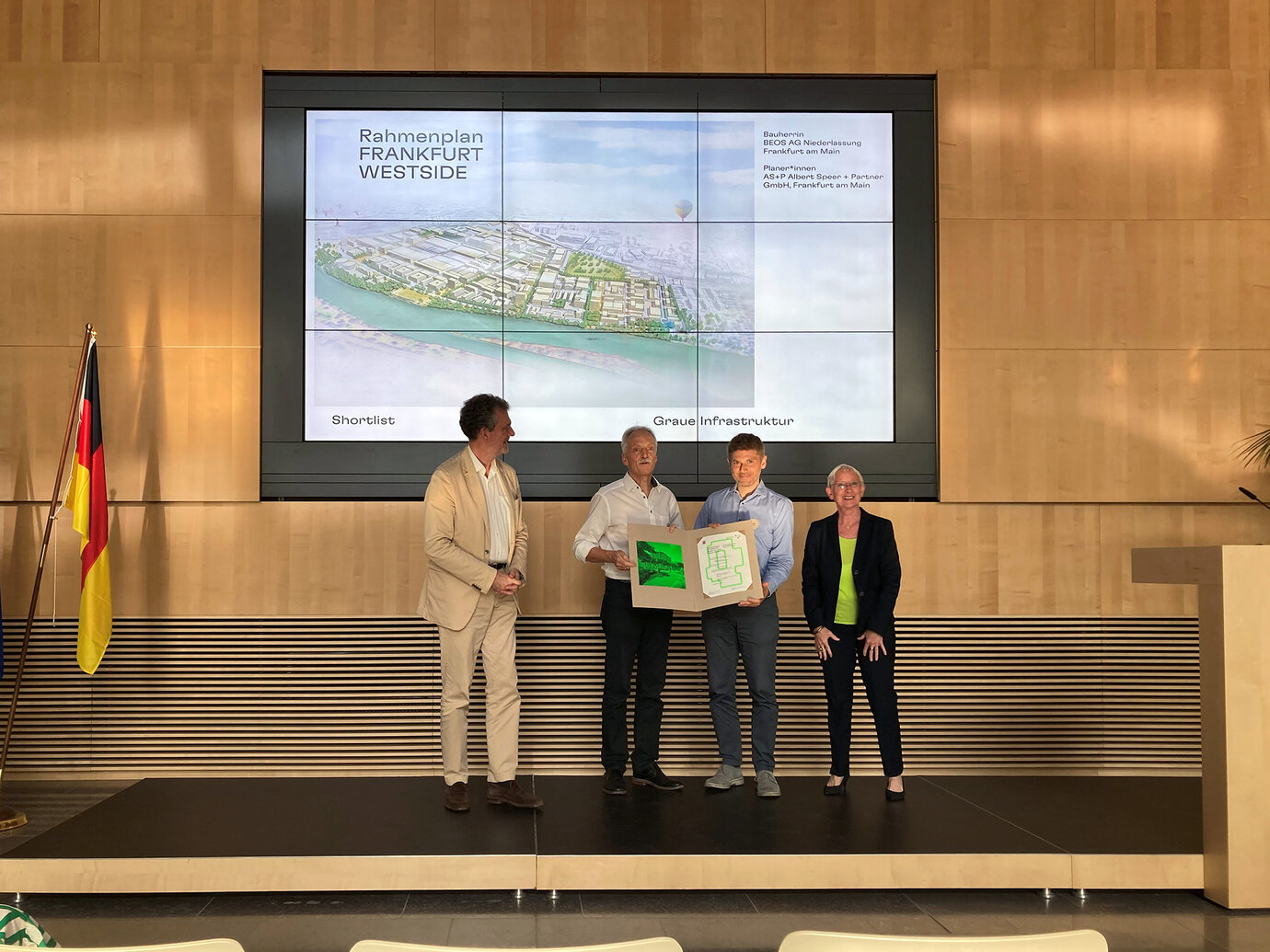Unter anderem wegen des nachhaltigen Umgangs mit grauer Infrastruktur hatte das Projekt viel Aufmerksamkeit erlangt. Bei der feierlichen Preisverleihung zur „Auszeichnung vorbildlicher Bauten im Land Hessen 2023“ im hessischen Finanzministerium am 14. Juli 2023 in Wiesbaden wurde der Beitrag von AS+P mit einer Urkunde bedacht. Zudem wird der Rahmenplan FRANKFURT WESTSIDE im Sustainability Paper 4 der Architekten- und Stadtplanerkammer Hessen ausführlich präsentiert („Gesellschaft, Stadt und Land vernetzen – Soziale, grün-blaue und graue Infrastrukturen für die Zukunft“).