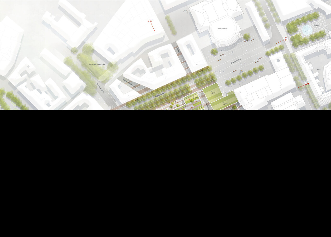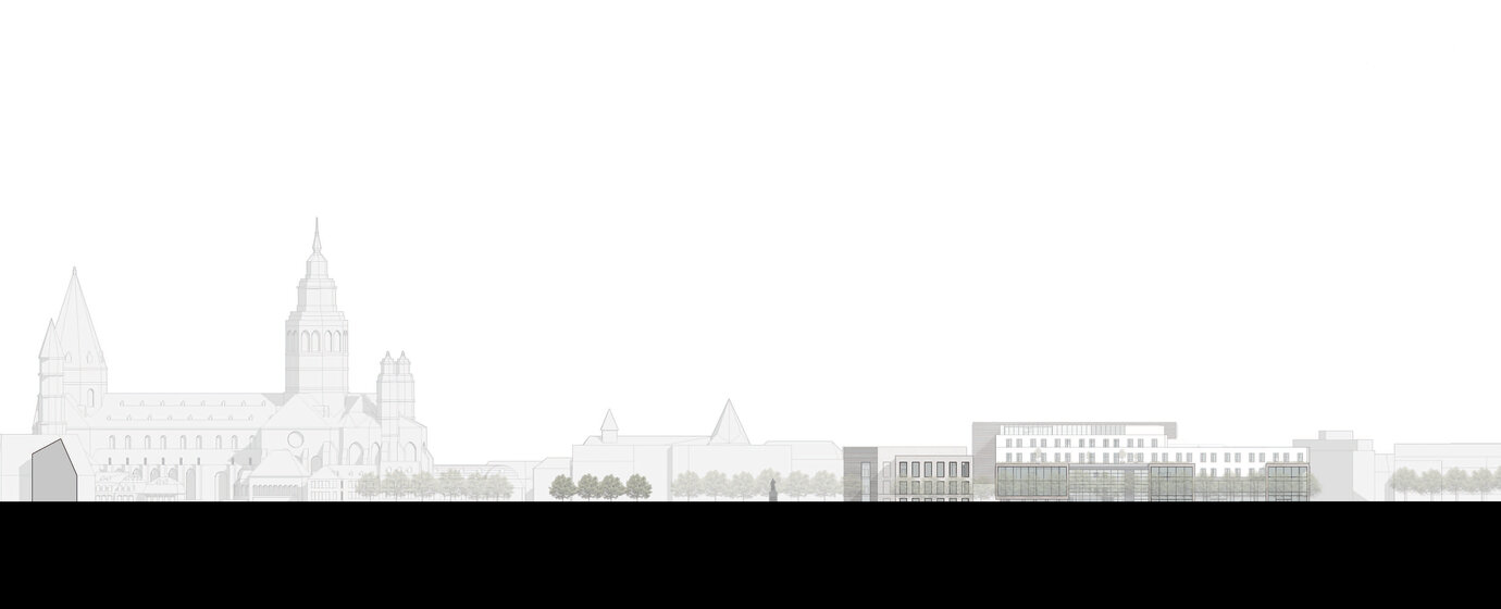 Ludwig 大街建筑立面效果图,视角包括大教堂,Gutenberg 大街以及席勒广场
