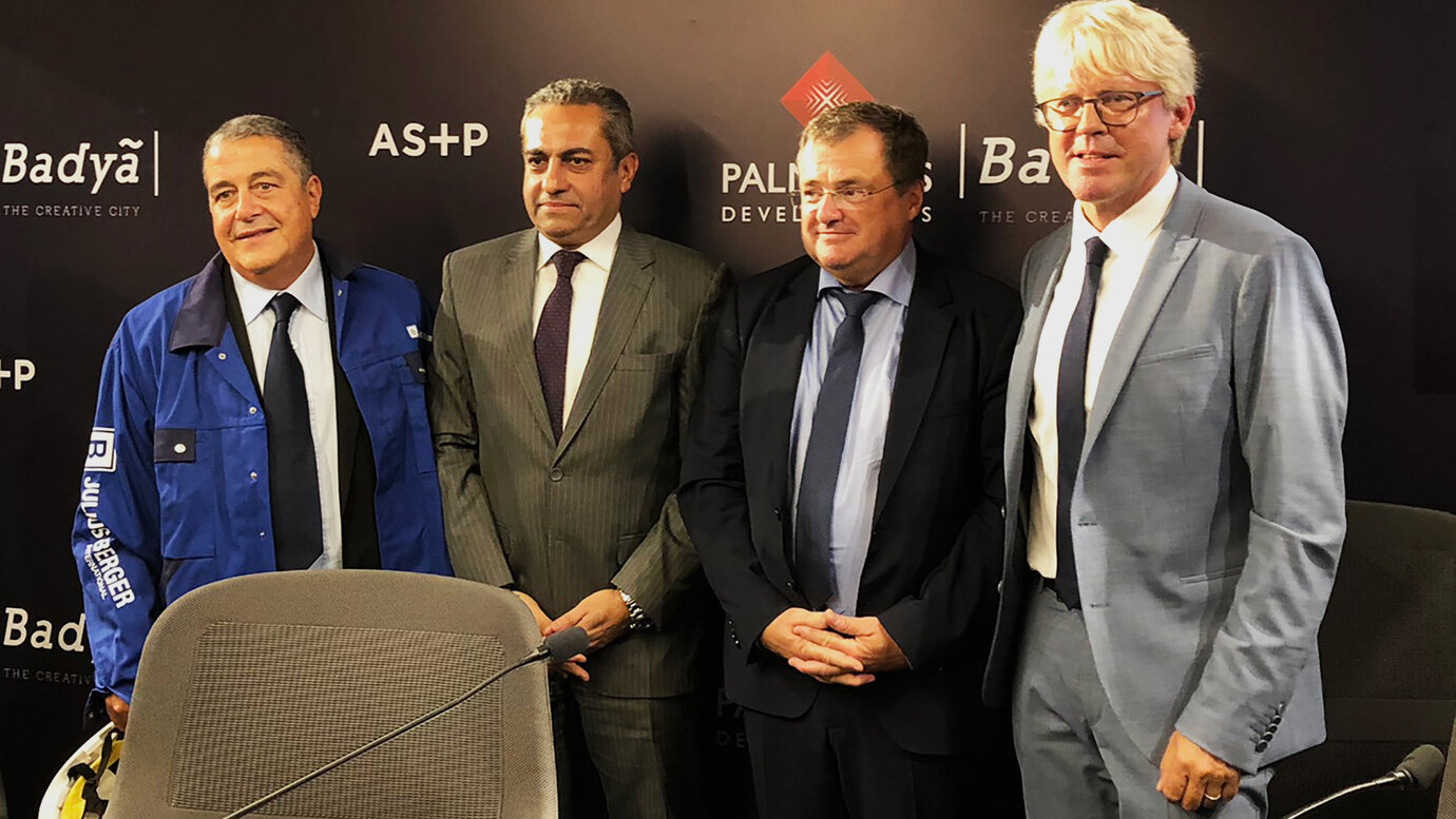 于 10 月 6 日在开罗附近的巴迪亚展厅举行签字仪式。除 AS+P 总经理 Joachim Schares 外,Palm Hills Developments 的董事长 Yasseen Mansour、Julius Berger International 董事总经理 Karsten Hensel、埃及教育部长 Khaled Abdel Ghaffar 以及住房部副部长 Khaled Abbas 也出席了仪式。Schares 在讲话中强调了 AS+P 对这一宏伟项目的长期贡献。他和 Mansour 还着重强调了最近获得的“概念”类“标志设计奖”和“至尊奖”,德国设计委员会最近也承认这一奖项是“具有突出示范意义的智能化、可持续和出色的解决方案”。