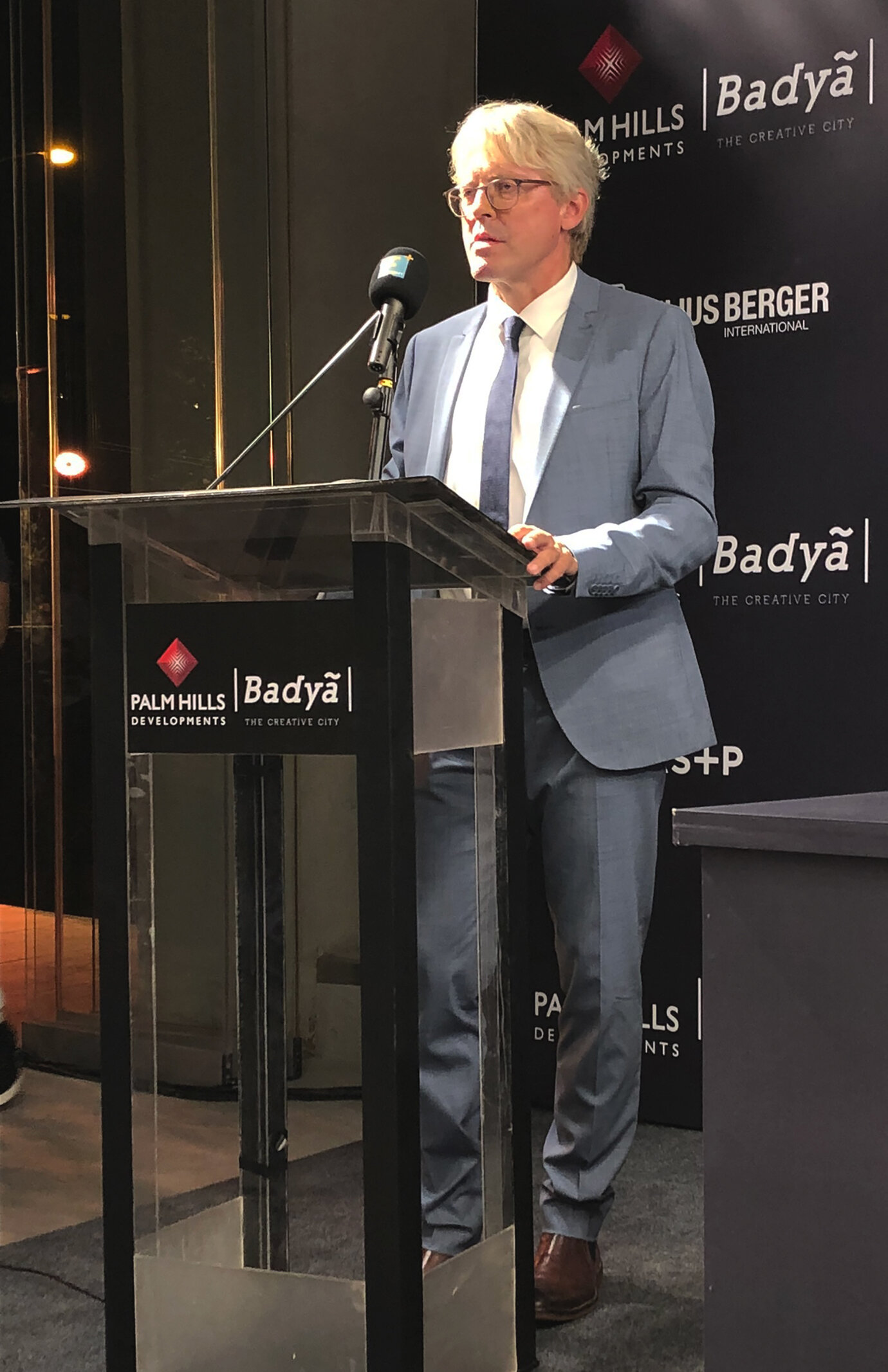 Joachim Schares bei seiner einleitenden Rede zum Start der Bauphase von Badya City.
