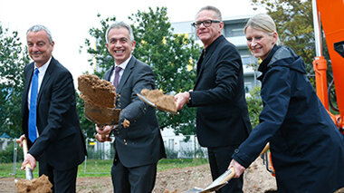 Mit einem feierlichen Spatenstich im Beisein von OB Peter Feldmann und Frank Junker, Vorsitzender der Geschäftsführung der ABG FRANKFURT HOLDING, fiel im August der Startschuss für den Bau der von AS+P geplanten Wohngebäude an der Cordierstraße. Auf dem Grundstück im Frankfurter Gallus-Viertel entstehen drei 6-geschossige riegelförmige Neubauten im Passivhaus-Standard mit insgesamt 129 Wohnungen.