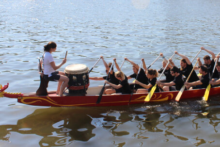 "Are you ready? – At­ten­ti­on – Go!“ Das AS+P Team hat wie schon in den ver­gan­ge­nen Jah­ren beim Dra­chen­boot­ren­nen auf dem Main während des Mu­se­ums­ufer­fes­tes in Frank­furt teil­ge­nom­men.