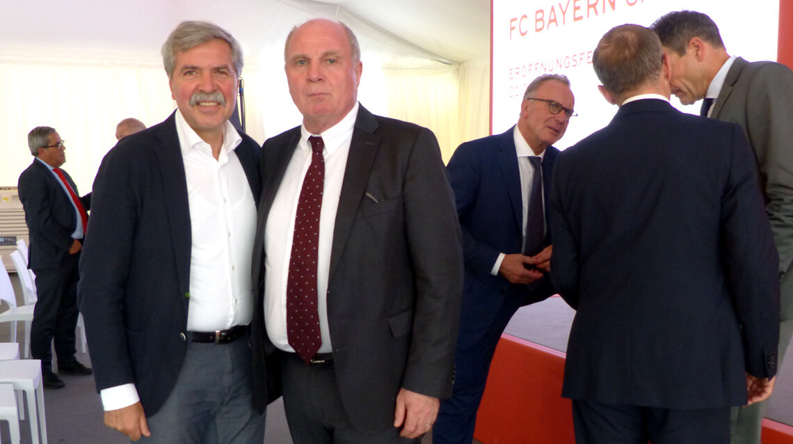 „Wir sehen in diesem Campus die Chance, viel Erfolg zu generieren“, sagte Hoeneß vor rund 300 geladenen Ehrengästen und rund 100 Journalisten auf der neuen 30 Hektar großen Sportanlage, „dieser Campus soll ein weiteres Fundament für die Zukunft des FC Bayern sein, ein weiteres Markenzeichen unseres Klubs.“
