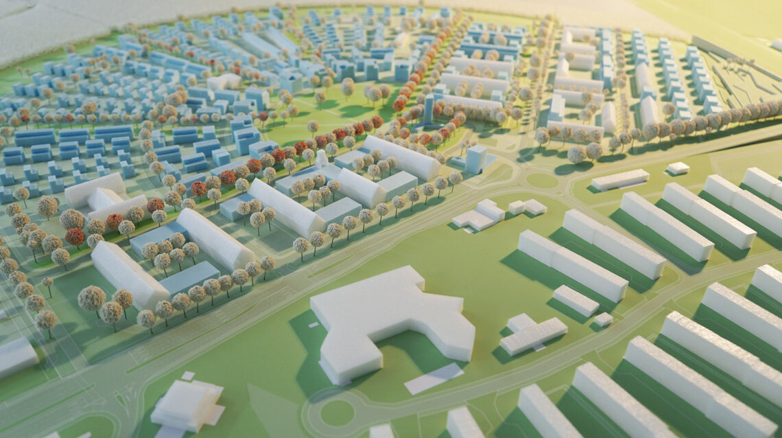 AS+P 构思的城市建设结构方案拟建大约 1,600 个住宅单元,它们将以不同类型的单户住宅和多层住宅形式,分布在"新公园城市"中。结合补充性的都市用途,正在哈瑙建立一个具有吸引力的新市区。短短几个月内,在 AS+P 和 LEG Hessen-Hanau 以及哈瑙市政府的支持下,创建了一个全面且令人印象深刻的发展计划草案。在发展计划公布后,预计将在 2019 年第一季度被确定为正式的发展规章。