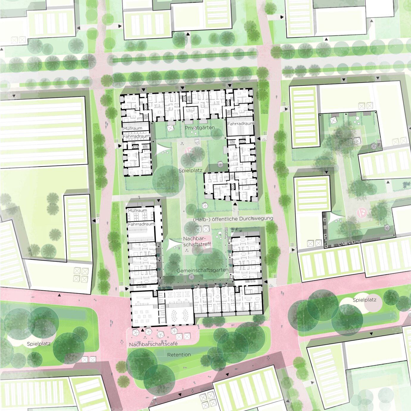 AS+Ps zukunftsgewandtes Konzept zeichnet sich durch Lebendigkeit, Klimaresilienz und Vernetzung auf allen Maßstabsebenen aus.