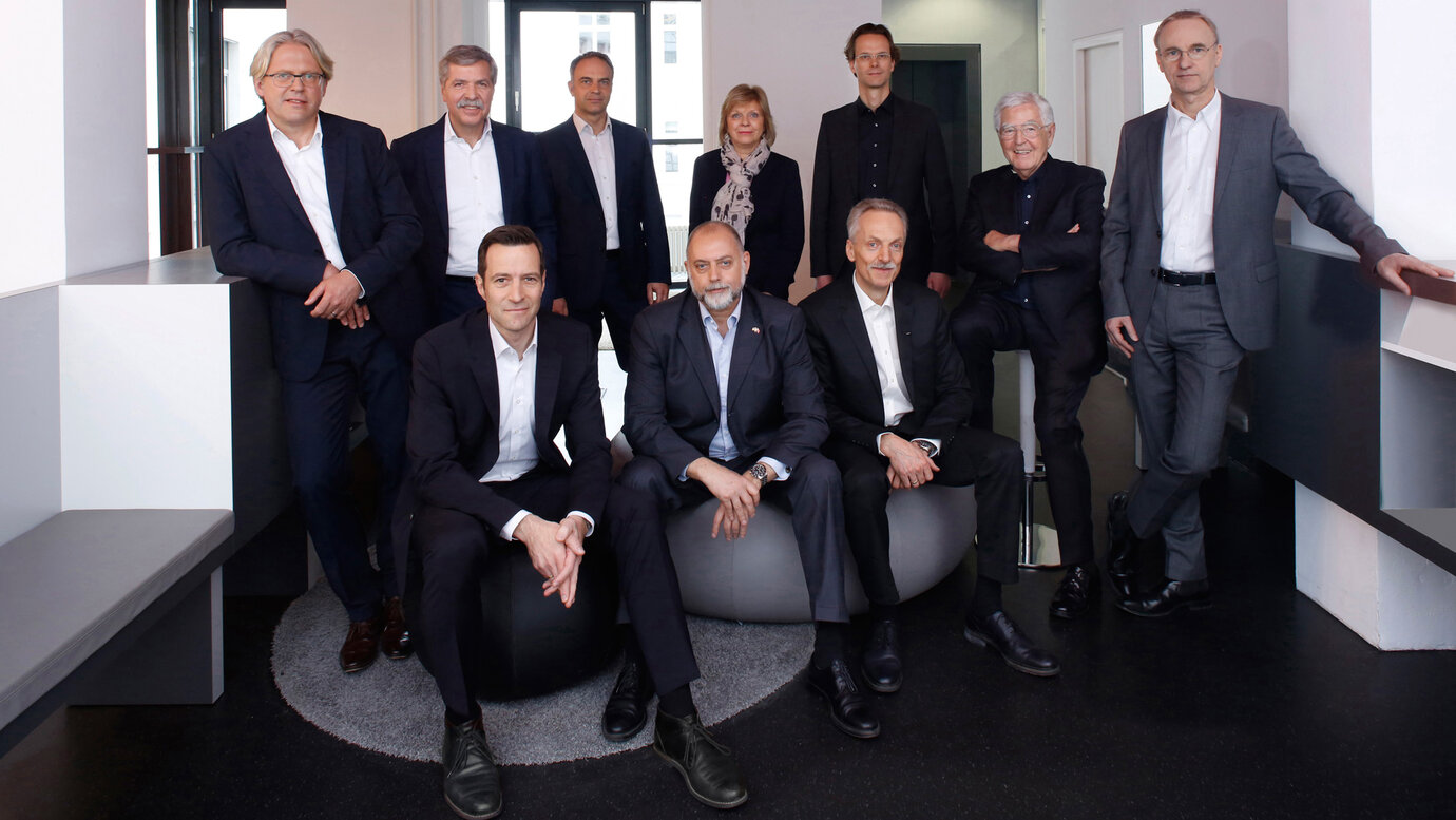 Geschäftsleitung AS+P Albert Speer + Partner GmbH; oben: Joachim Schares, Friedbert Greif, Dirk Kahl, Gerda Schneider, Martin Teigeler, Prof. Albert Speer, Dr. Michael Denkel; unten: Axel Bienhaus, Johannes Dell, Stefan Kornmann
