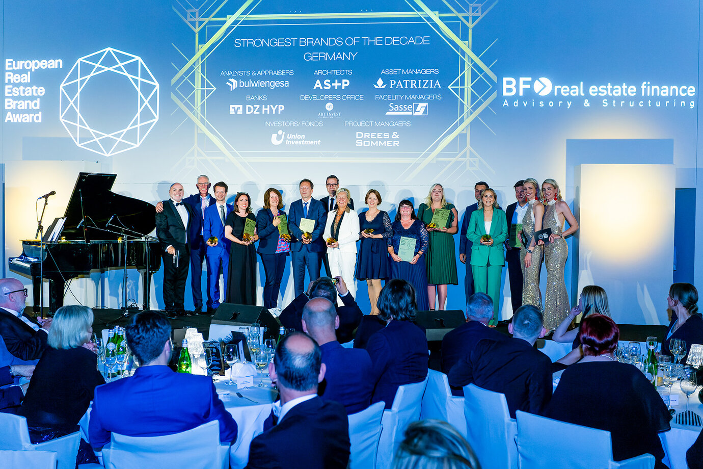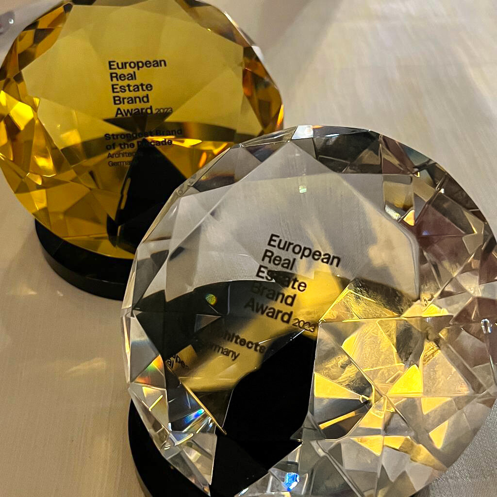 Gleich zwei Diamanten konnten AS+P-Geschäftsführer Axel Bienhaus und Susanne Wellershaus, Leiterin Unternehmenskommunikation und Angebotsmanagement auf der Award Gala der „stärksten Marken der europäischen Immobilienwirtschaft“ im Hotel de Rome in Berlin entgegen nehmen. „Das ist eine klasse Leistung unseres gesamten AS+P-Teams, den besten Markenbotschafter*innen“ so Susanne Wellershaus. Mit dem goldenen Sonderpreis für die „Strongest Brand of the Decade“ prämierte das European Real Estate Brand Institute zu seinem 15-jährigen Jubiläum jene Marken, die sich auf langjährige Sicht als besonders stark und resilient erwiesen haben und so für künftige Herausforderungen stark positioniert sind.