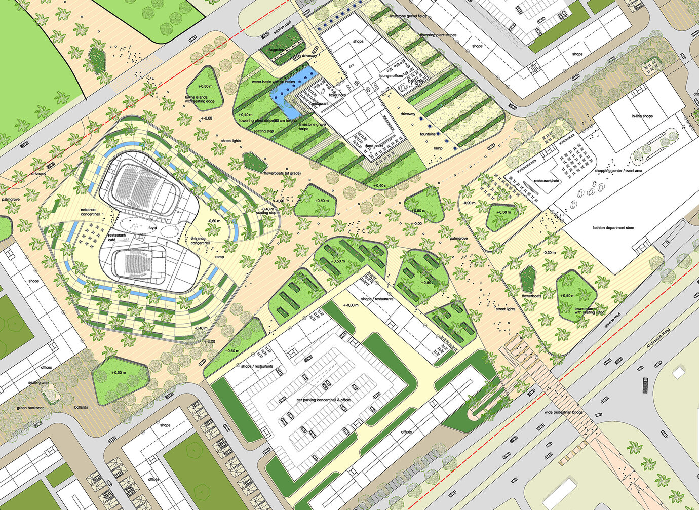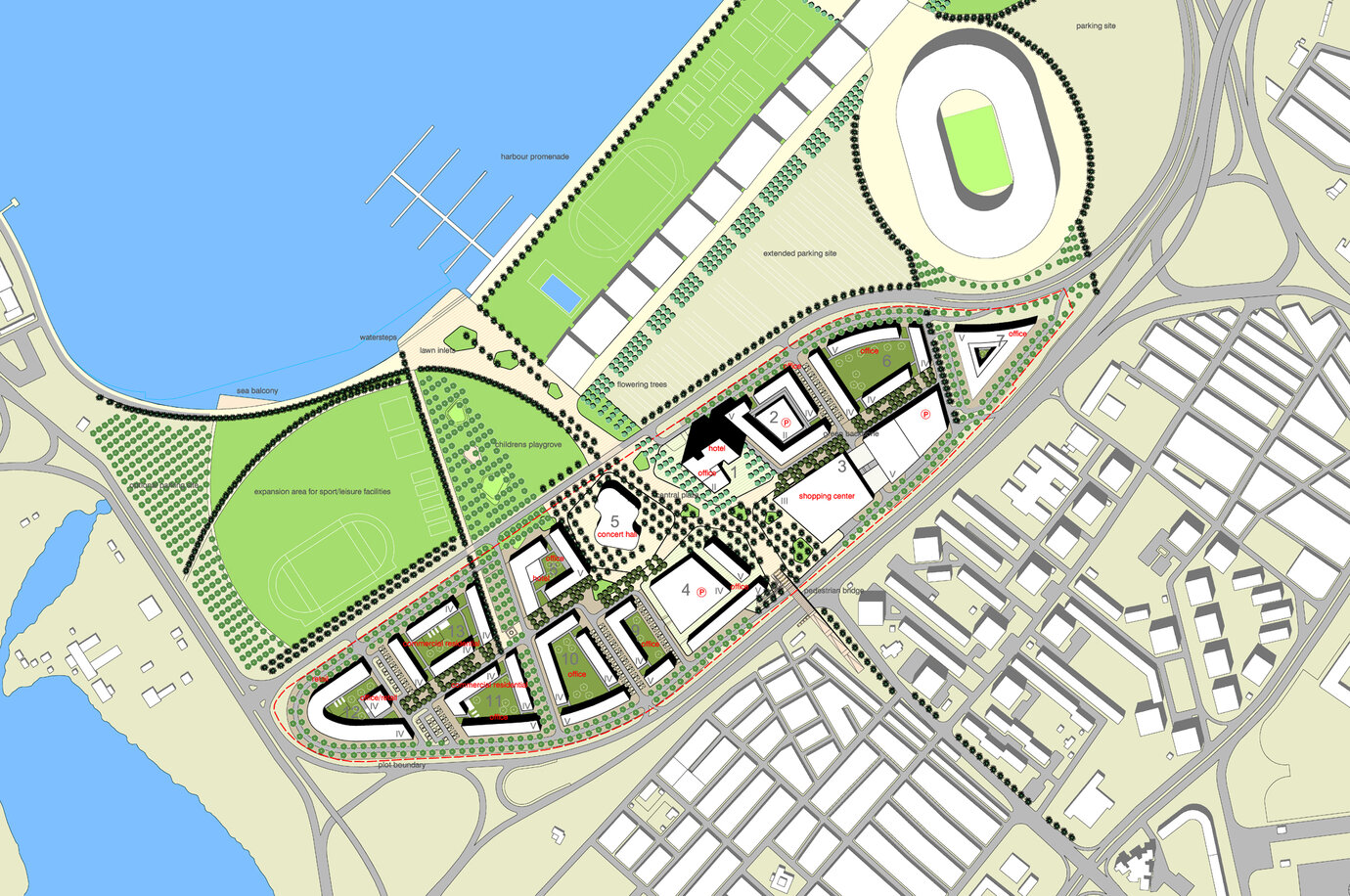 利比亚投资发展公司 (LIDCO) 的目标是在班加西7月23日湖以南开发面积为 24 公顷的市内区域。 总体规划中不仅包括该地块的空间结构设计和规划,还基于之前的用途重新设计了开发方案。这些方案已经包括在体育城市总体规划中 (Sports City Masterplan)。"湖滨广场"愿景的目标是在班加西建立一个全新的商业中心。
