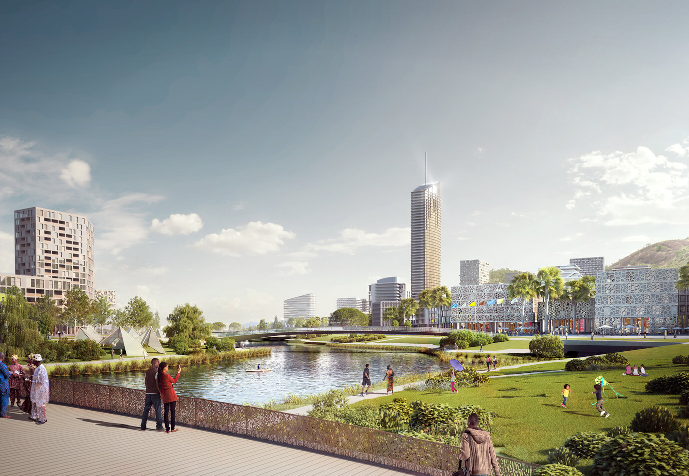 尼日利亚共和国政府计划在其联邦首都建立一个新的自给自足的城区,即所谓的百岁城市。该项目的规划面积约为 13 km²,毗邻国际机场,距阿布贾商业中心仅 25 公里。这座城市不仅应服务于大约 20 万居民、工人和游客,同时还将可持续的城市设计原则与渐进式土地利用联系起来。由此产生一种尊重周围自然景观,并具有社会和经济可行性的城市形态。此外,百岁城市还拥有特殊的税收政策,从而支持其作为尼日利亚新金融中心的地位。 AS+P 制定的总体规划考虑到了核心区域的密集度,交通轴线采取风车状的布局模式,该交通轴线构成了城市动脉和新区心脏。在建造标志性高层建筑的同时,也将在该地区打造出令人印象深刻的自然景观。该城市的总体布局与联邦首都中心区域和阿布贾城市彼此呼应,属于同一种城市发展理念。 在此过程中,在国际上享有威名的行业专家 Transsolar、Atelier Dreiseitl 和 ENVAC 根据各自的专业知识,对生态型城市规划的技术方面提供了宝贵的意见。可以将高效的能源解决方案、可持续的水资源和废物管理系统及土地利用规划纳入该地区的整体规划方案中,以便制定整体规划文件。百岁城市总体规划因此为打造一座拥有国内最好和最先进的基础设施、符合最高建筑标准的自给自足型城市创造了可行性。