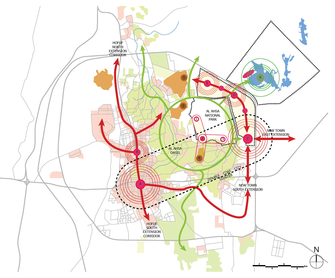 面向未来的可持续城市总体规划,旨在推动胡富夫在城市东部边缘地区的拓展,这里毗邻世界上最大的绿洲——阿赫萨棕榈树绿洲。