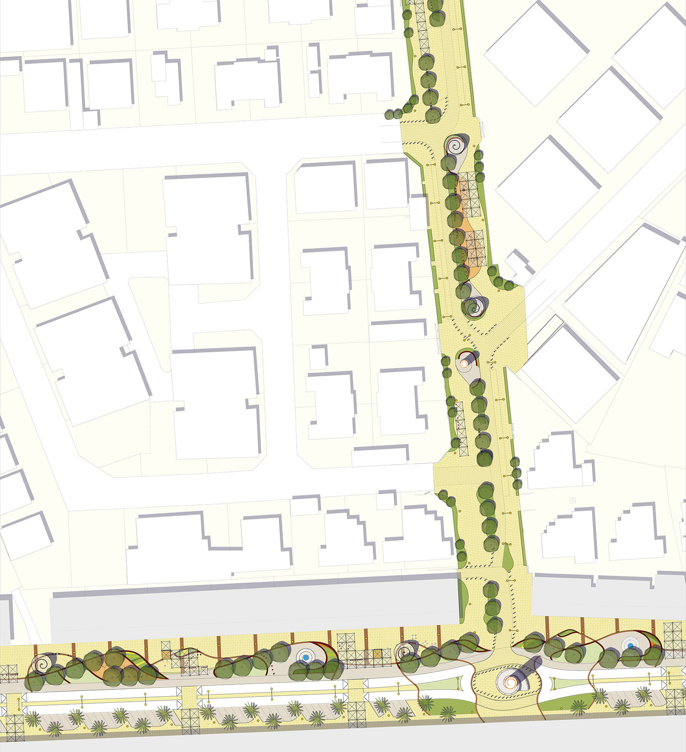 以 4 个路段(总长约 5 km)为例,进行公共空间升级的设计研究,在国际比赛中获得一等奖