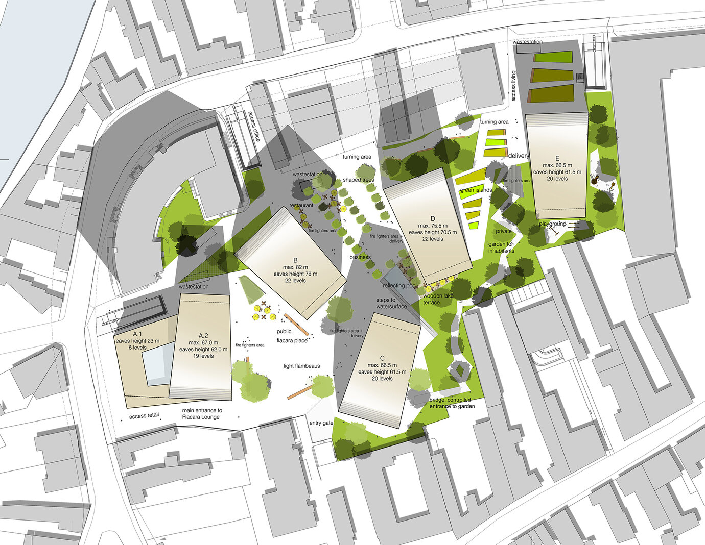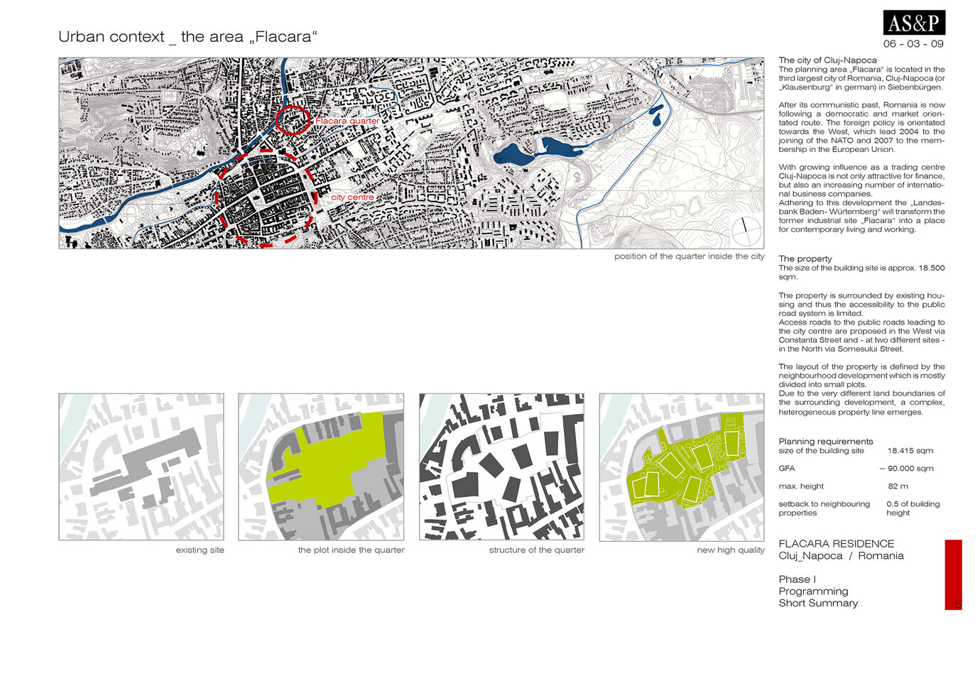 LBBW Immobilien 在罗马尼亚第三大城市的中心获得了一块土地,这片土地将按照生活和工作两用的混合用途加以开发,并以最高的建筑标准建造。AS+P 凭借自己的设计方案,在备受瞩目的竞争中占据优势,该方案放弃了最大化的土地利用率而着重于保证质量。这一可持续发展的方案,也让委托方折服。五个高楼具有不同用途、个性化的定位和协调的高度变化,打造了"Flacara"建筑群的特色。开发了一种非常经济和灵活的高层基本型式,可根据需求通过最小的变化满足所有要求。为展现"Flacara Residence"的城市平台提供现代景观方案。定义了公共和私人区域,计划了前往邻近市中心的路线,并提供了高质量的住宿停留设施。通过与当地的建筑事务所合作,在非常紧迫的时间框架下成功通过了审批计划。