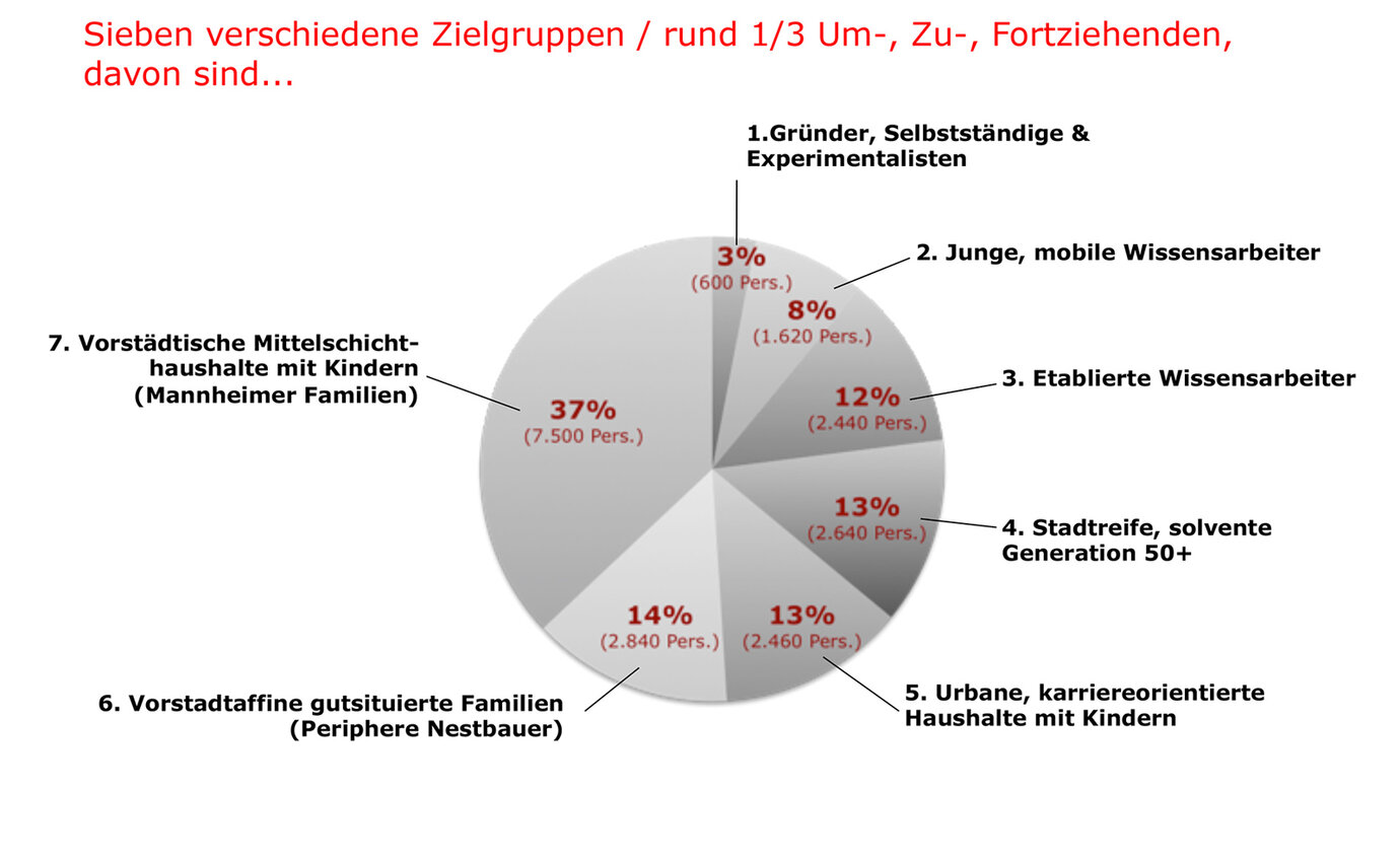 曼海姆市委托进行研究,其目标在于在"居住·空间·城市"住宅市场发展行动方案的背景下,增加该城市对注重生活质量的目标居民群体的吸引力和凝聚力。通过该研究项目中的主题研究,对现有住宅区的营销策略进行深入分析。 本次评估对相关目标群体进行定位,并对选定的城区小空间开发区的潜力和适用性进行分析。本次评估的委托方为曼海姆市政府和 GBG-Mannheimer Wohnungsbaugesellschaft mbH,此次评估对曼海姆的未来定位提出了战略建议,认为曼海姆对以家庭和事业为导向的知识型工作者和希望从周边地区迁居的人群具有吸引力。此过程需要有利于实现城市的整体发展目标、尤其是"加强城市化"以及"人才战略"方面。 AS+P 对 11 个城区进行了分析并针对 5 个选定的区域制定了试点规划草案。本次研究的一项结果是:通过对此类相对较小的区域进行的设计,曼海姆作为住宅区的吸引力获得了很大提升。